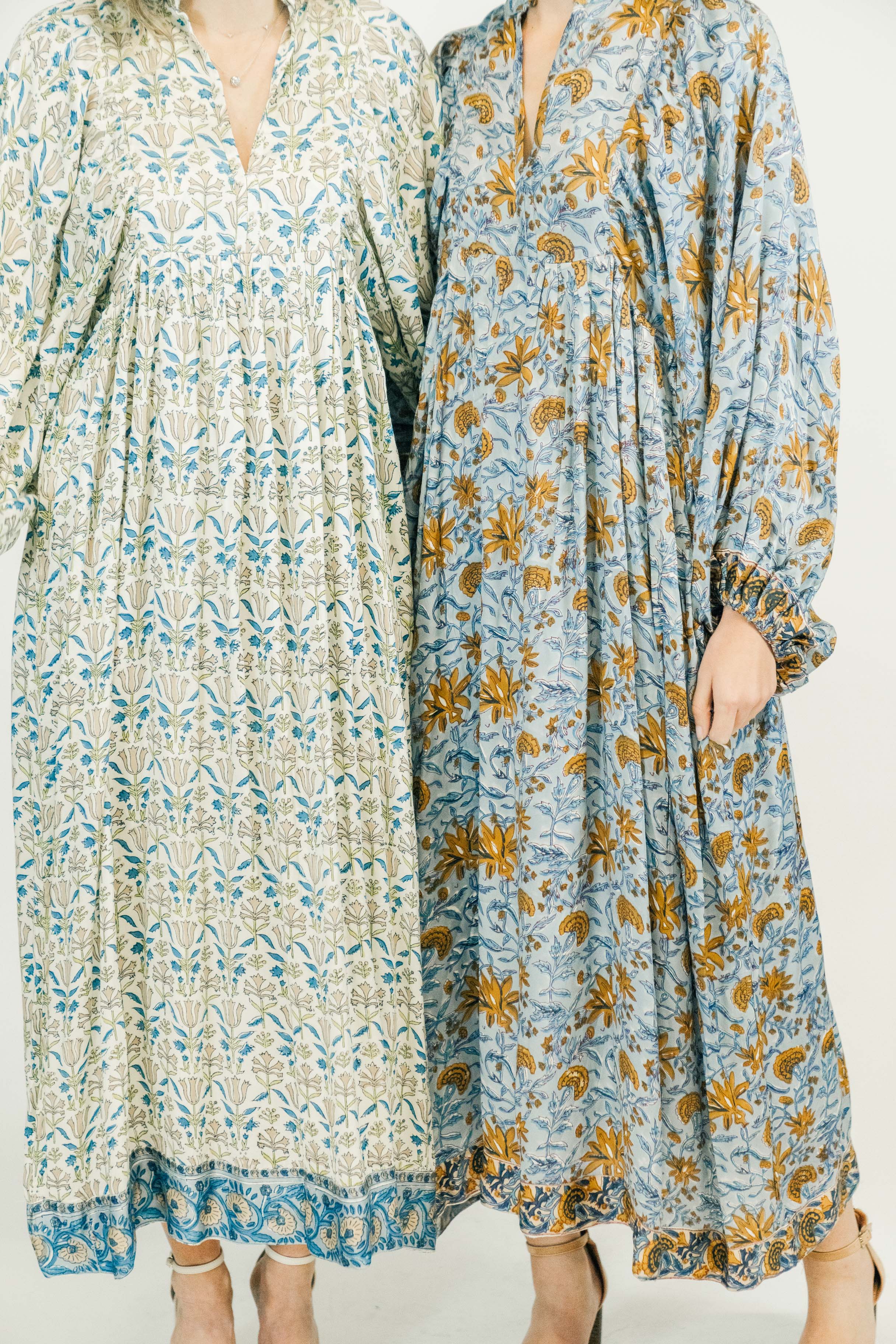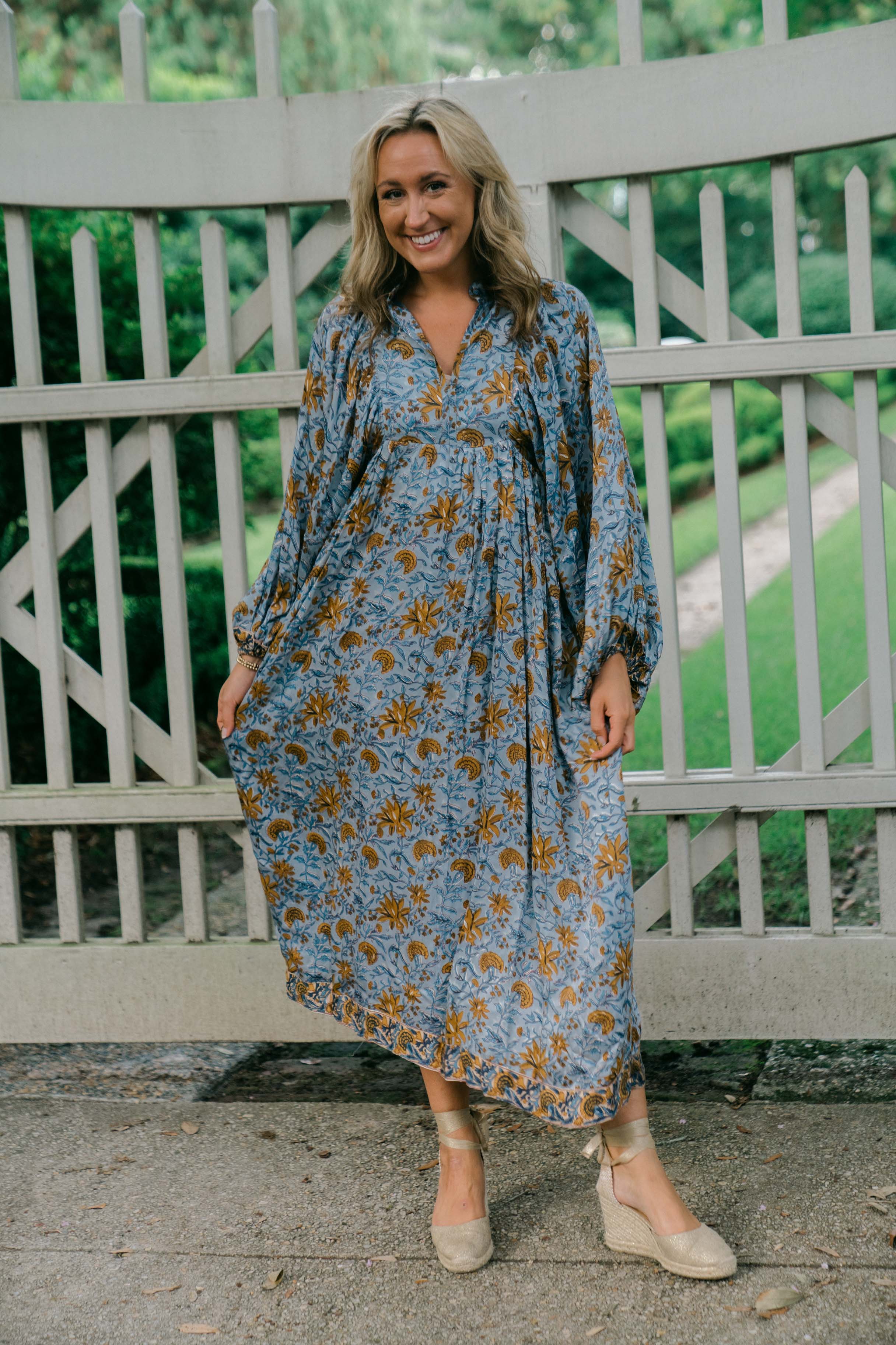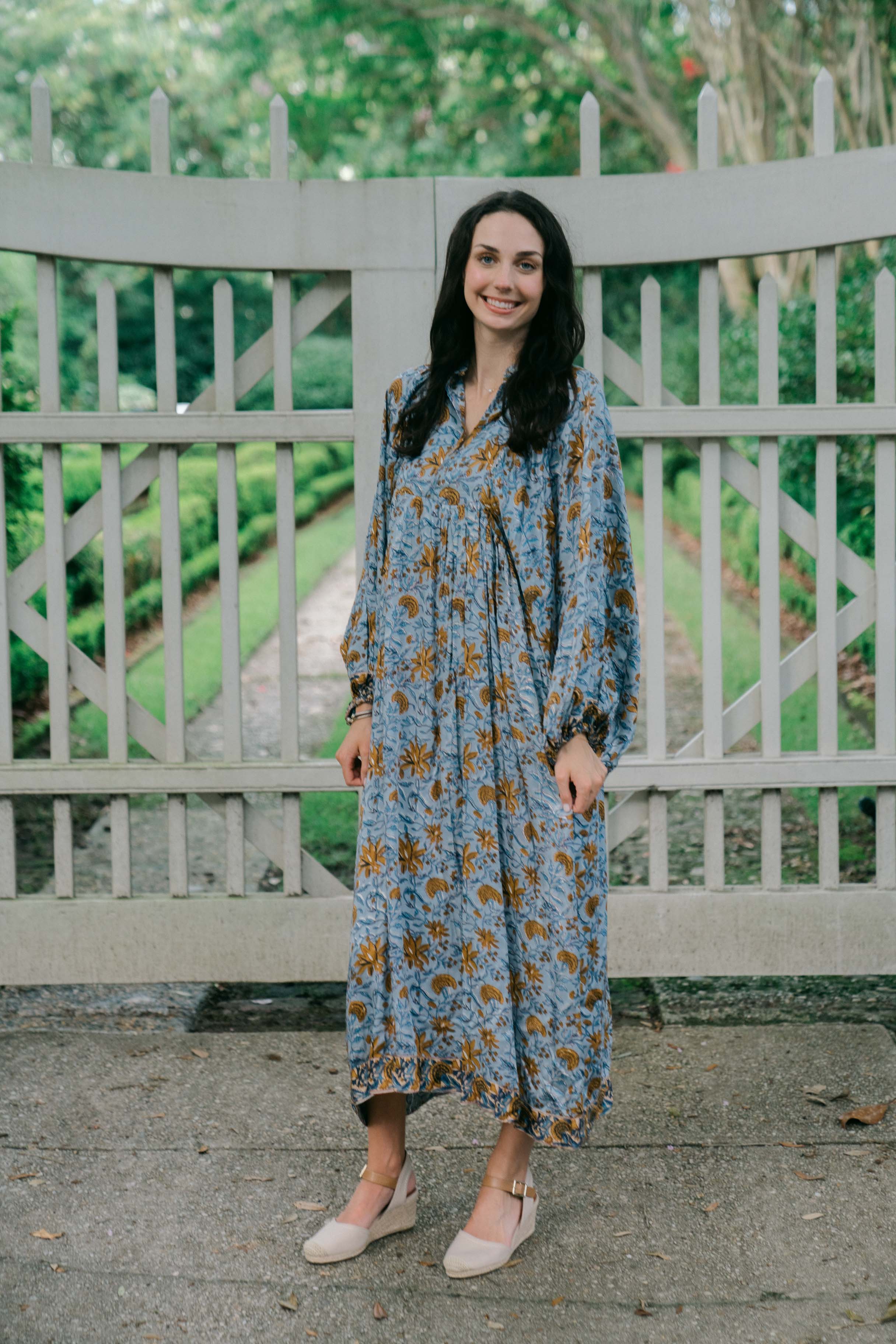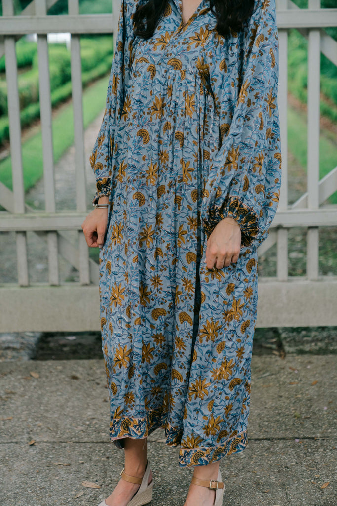 The Cassia is the all day, everyday maxi. This type features a v-neckline, long puff sleeves, and contrasting trim on the hem.