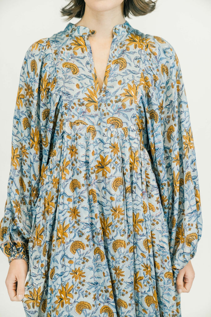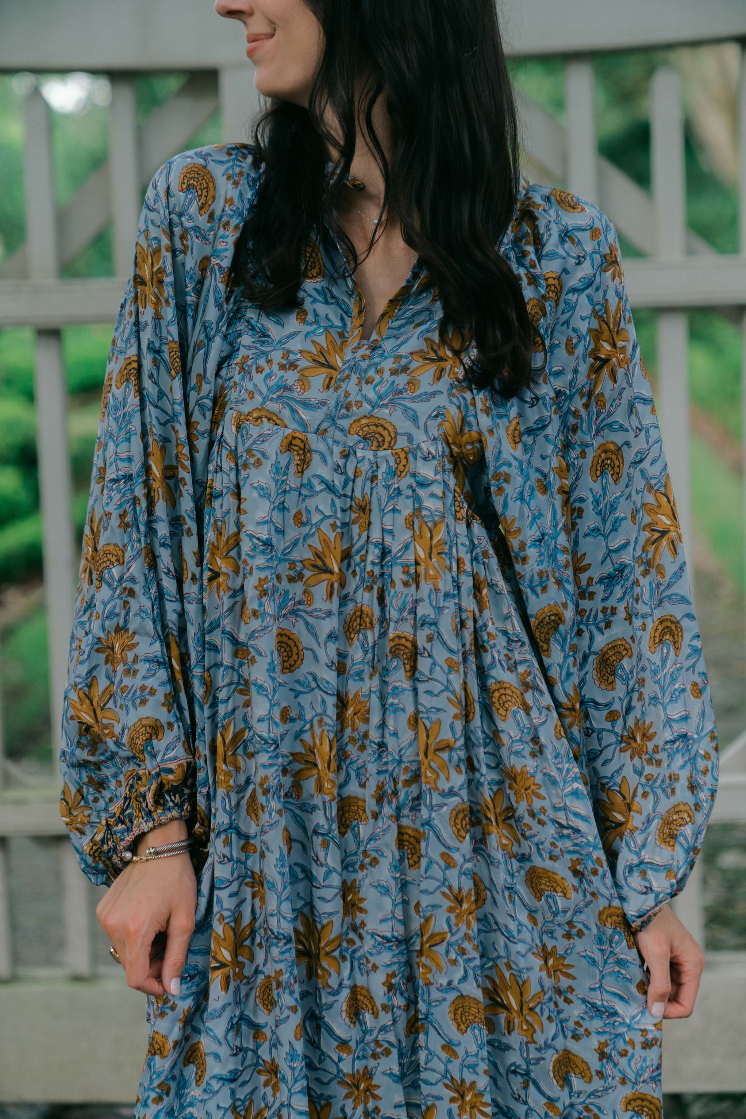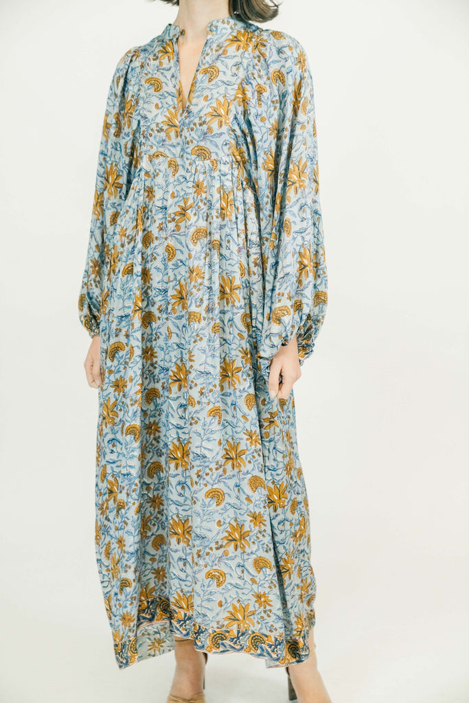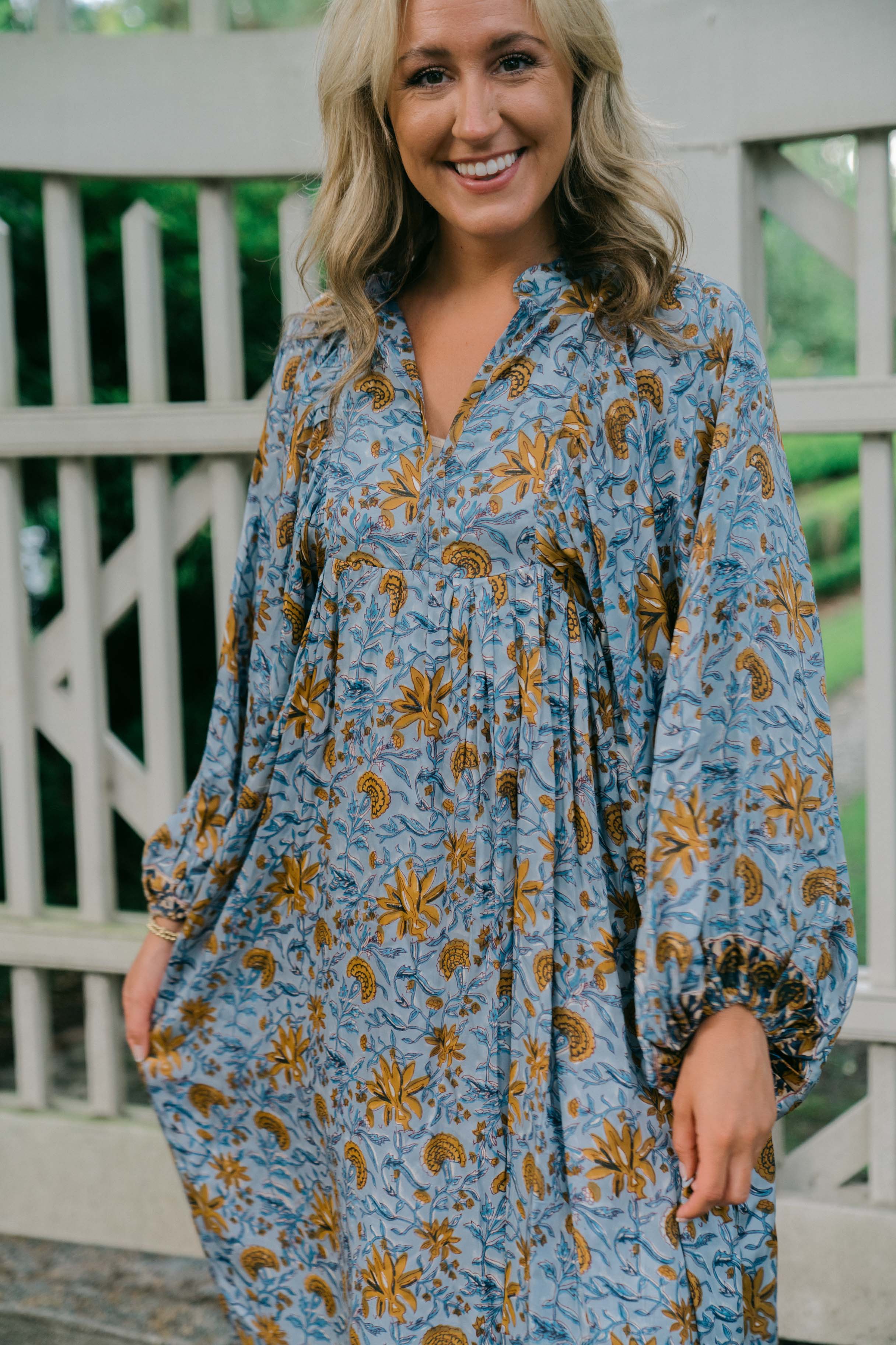 The Cassia is the all day, everyday maxi. This type features a v-neckline, long puff sleeves, and contrasting trim on the hem.