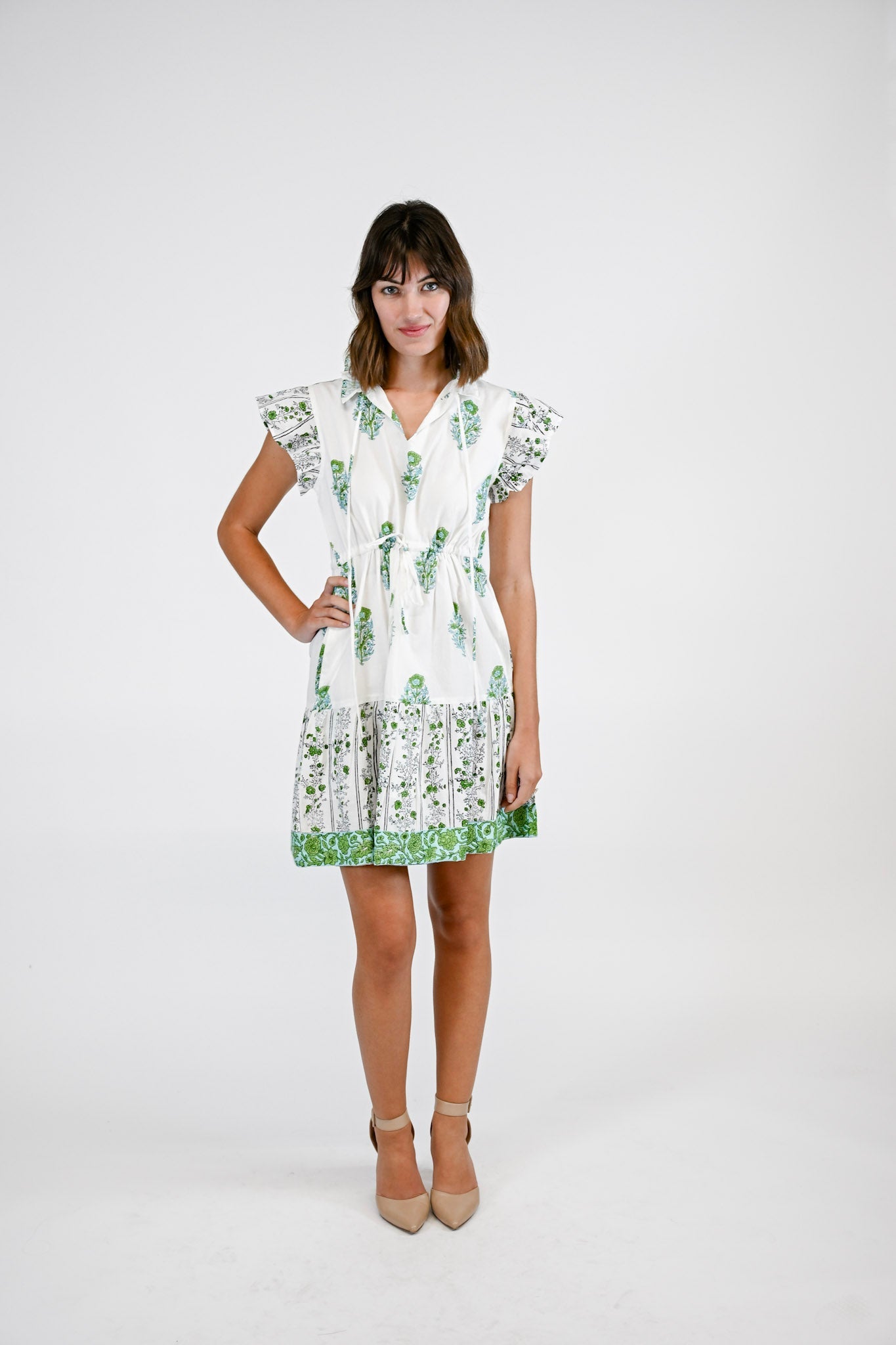Playful yet effortlessly polished, the Delilah Dress is a breezy silhouette designed for everyday elegance. Featuring a relaxed fit and pullover style, it’s finished with a short ruffle collar and adjustable tie neckline for a touch of feminine charm. The adjustable drawstring waist flatters the figure, while the trapeze-style tiered mini skirt and side pockets add movement and ease. Perfect for brunches, strolls, and everything in between, the Delilah is an instant favorite.