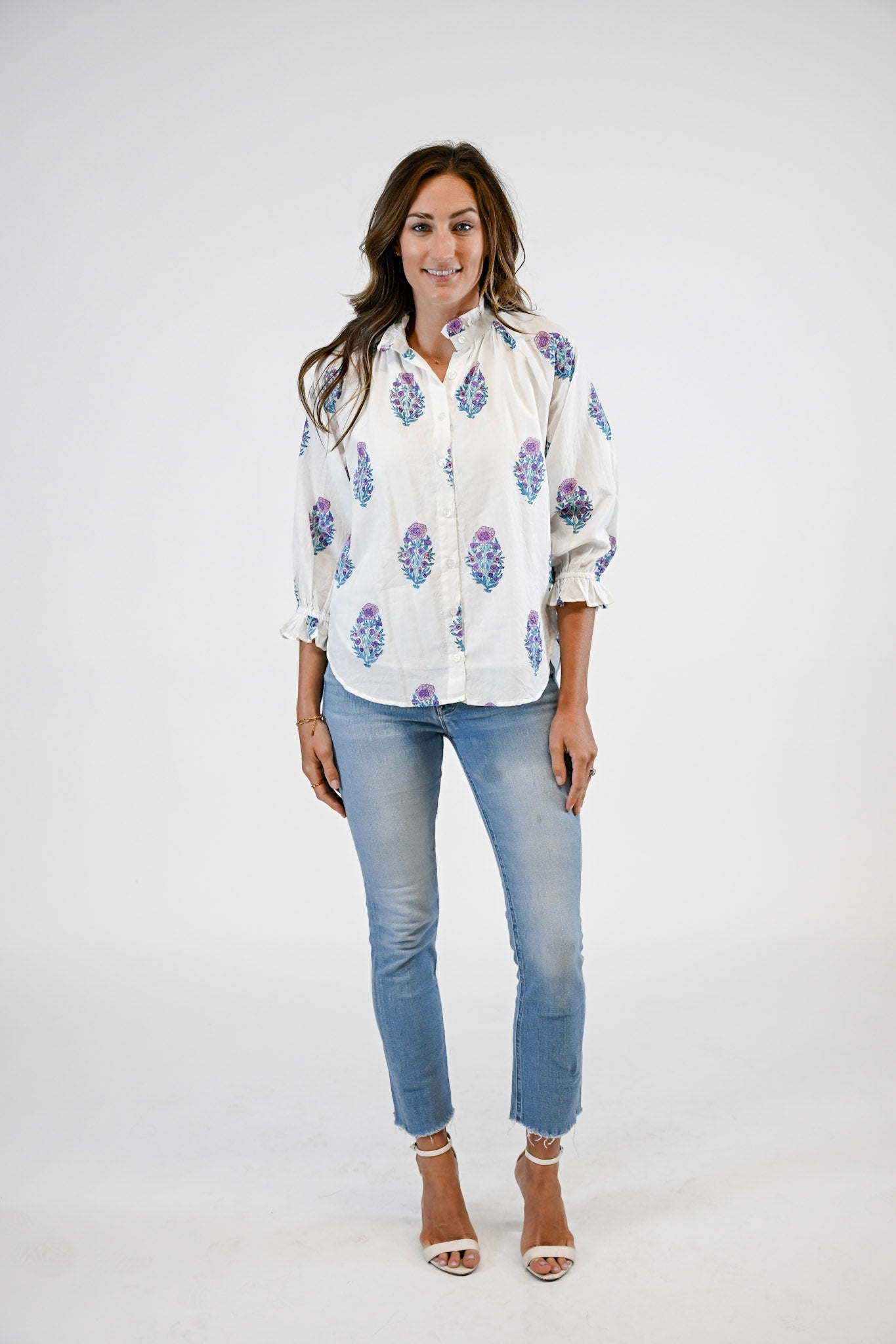 Timeless and versatile, the Sage Blouse is a true wardrobe staple. Designed with a refined mandarin collar and a button-front closure from collar to hem, this classic silhouette exudes effortless sophistication. Long puff sleeves add a touch of feminine charm, making the Sage perfect for pairing with everything from tailored trousers to your favorite denim.