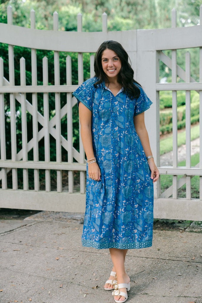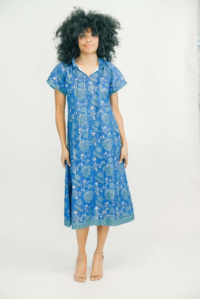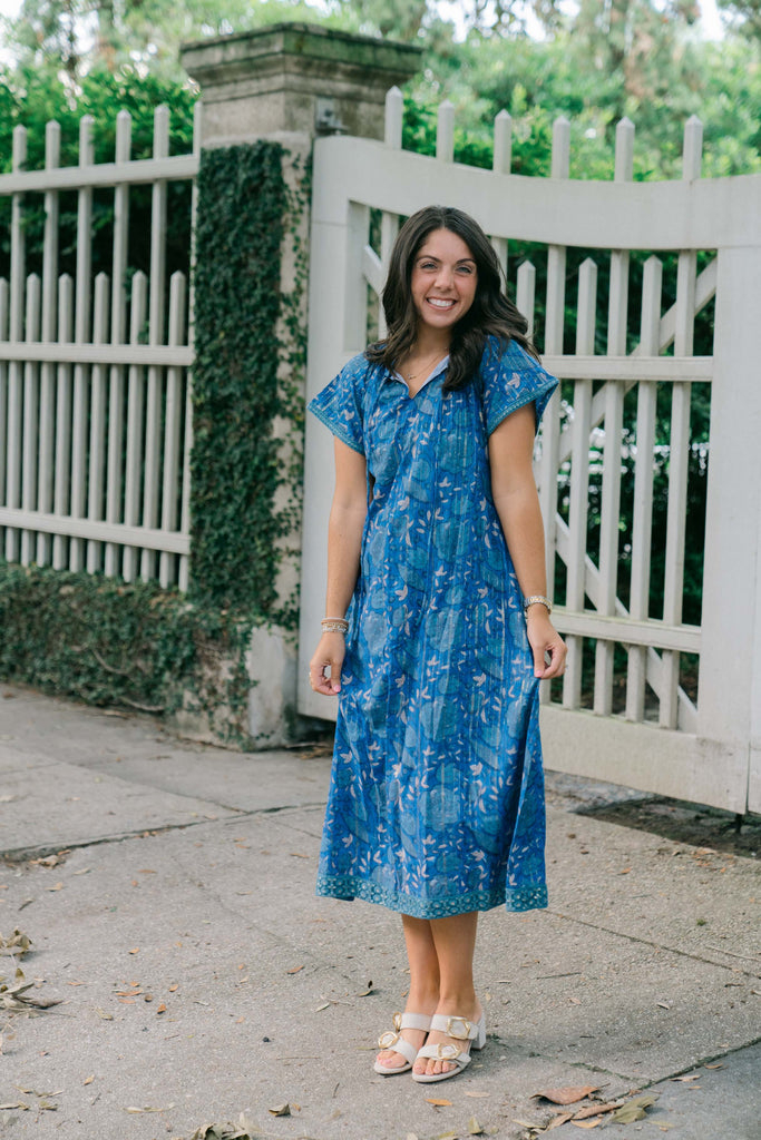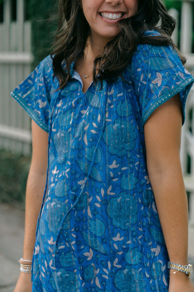 Inspired by our favorite minis, the Blair Midi is the perfect piece to throw on for any event. This style features short sleeves, v-neckline with tie closure, and embroidered trim.