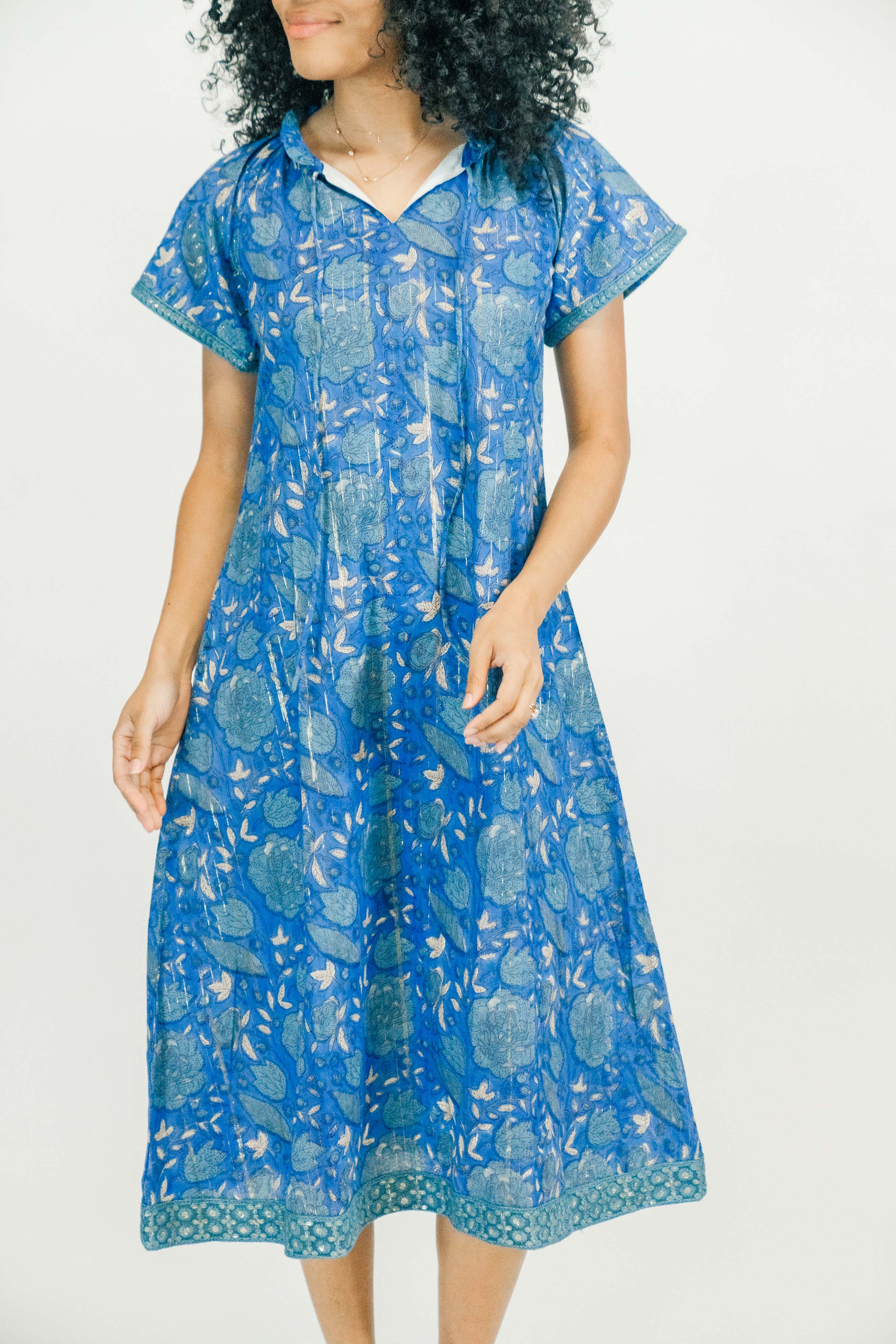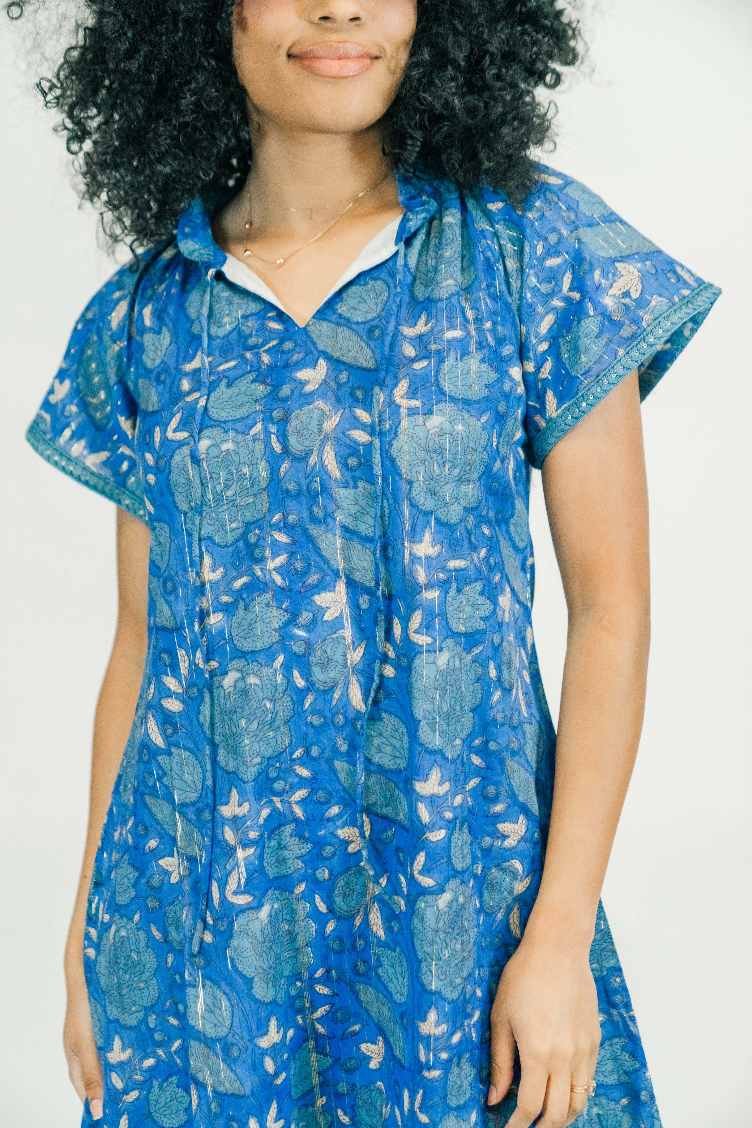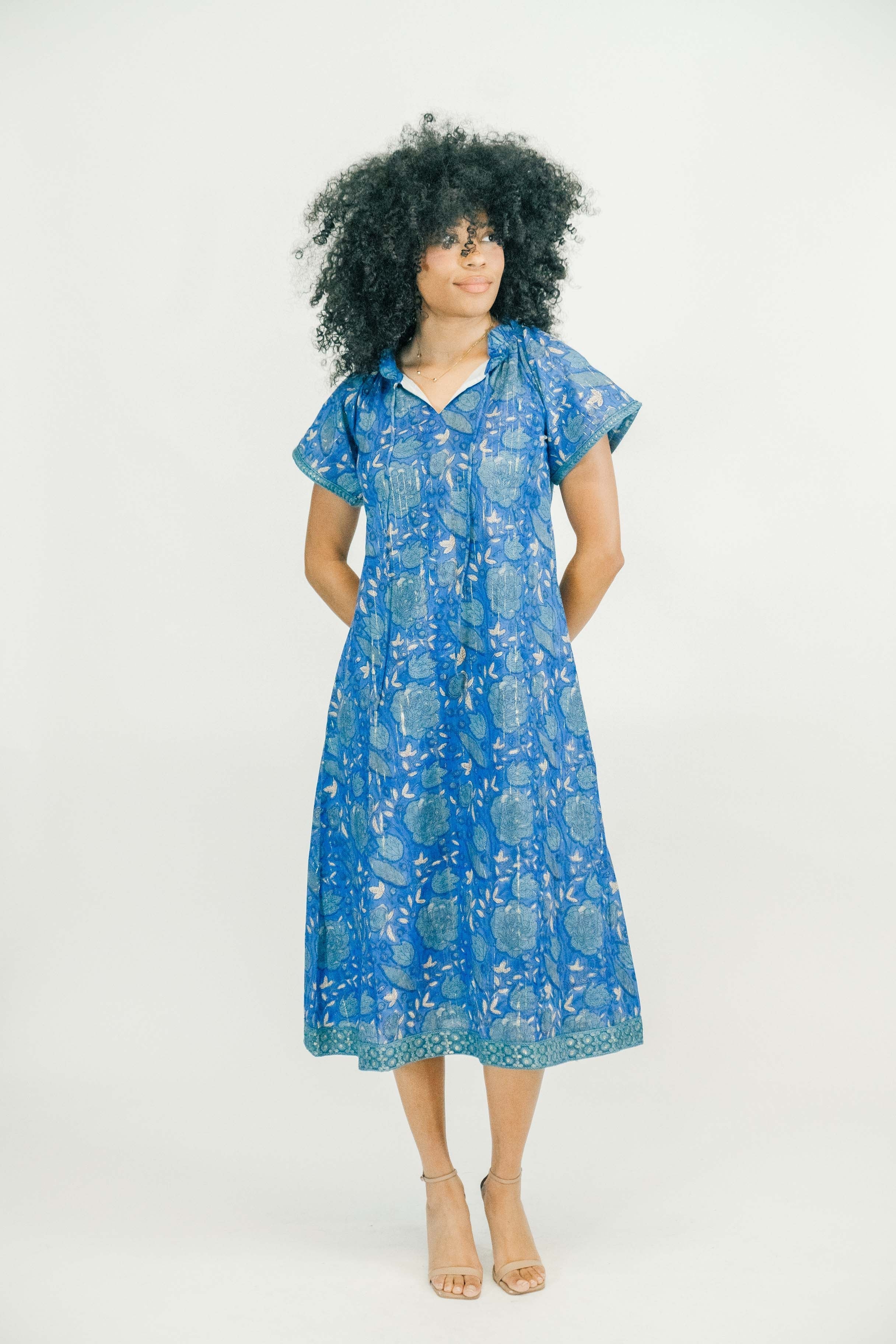 Inspired by our favorite minis, the Blair Midi is the perfect piece to throw on for any event. This style features short sleeves, v-neckline with tie closure, and embroidered trim.